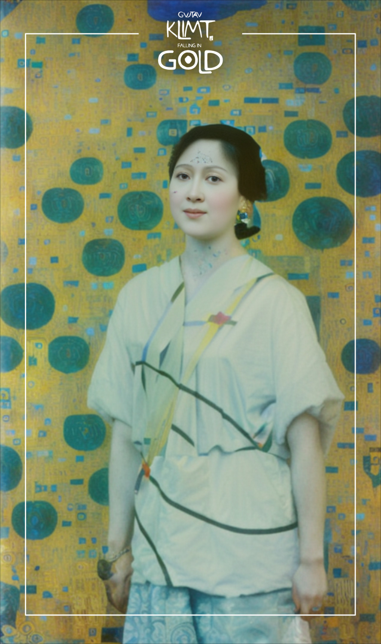 Final images feature Klimt’s signature decorative motifs, golden touches, symbolic patterns, and textures. The photograph becomes a canvas for reinterpretation.